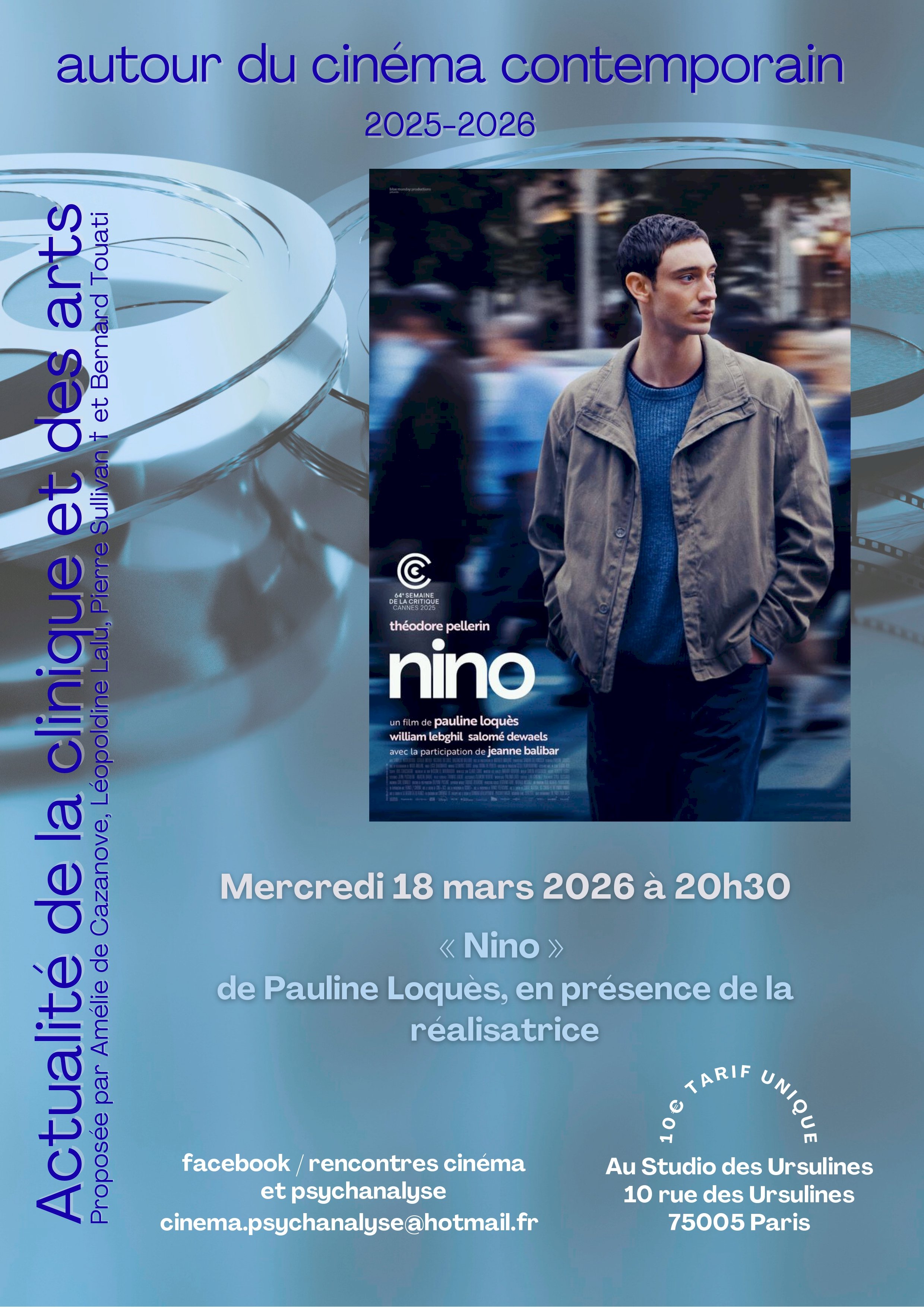 Et une nouveauté! : vous pouvez d'ores et déjà réserver vos places sur le site du Studio des Ursulines via le lien ci-dessous